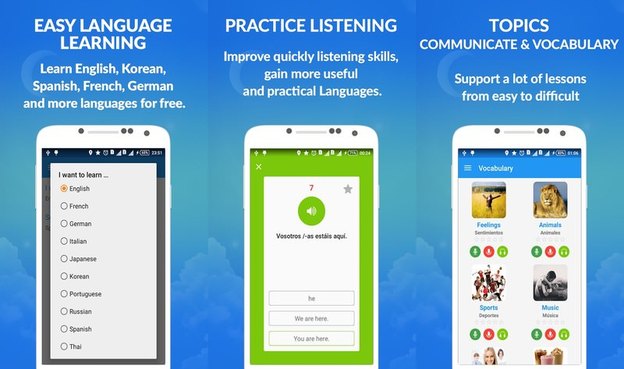 یک برنامه کاملا رایگان است که به شما کمک می کند تا بیش از ۴۰۰ عبارت و کلمه متداول را بیاموزید. این برنامه کاملا به طور آفلاین کار می کند و به شما اطلاعات بسیار زیادی برای تقویت مهارت زبانی تان میدهد. برنامه، دروس ترجمه صوتی، ویدیویی بازی های آموزشی بسیاری را پیشنهاد می دهد. همچنین به طور روزانه آزمون های مکالمه، شنیداری ، و مرتبط با حافظه ،به شما خواهد داد. تا مطمئن شوید که توانایی زبانی تان سلیس و روان باقی خواهد ماند.