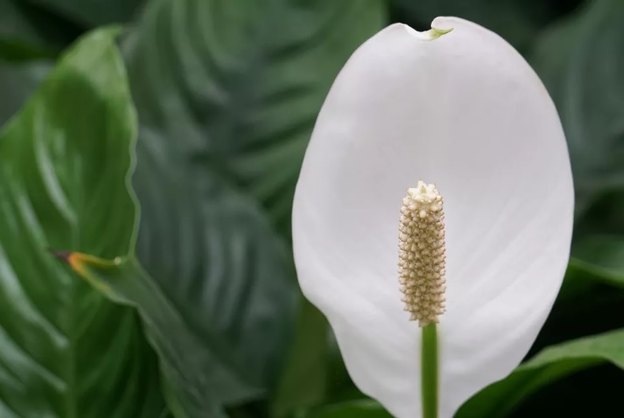 گلهای لیلیوم از برجستهترین ویژگیهای آن است. گلهای سفید لیلیوم که بلند و نازک هستند توسط ساختارهای سفید برگمانندی به نام اسپات احاطه شدهاند. این اسپاتها ابتدا سفید روشن هستند و در طول زمان با توجه به سن گیاه به سبز و زرد متمایل میشوند. گرچه گل لیلیوم شرایط گرم و دارای رطوبت بالا را ترجیح میدهد اما در خانهی شما نیز میتواند احساس راحتی کند، به شرط آنکه آن را نزدیک ورودیها و مکانهایی که برای مدت طولانی گرم نیستند قرار ندهید.