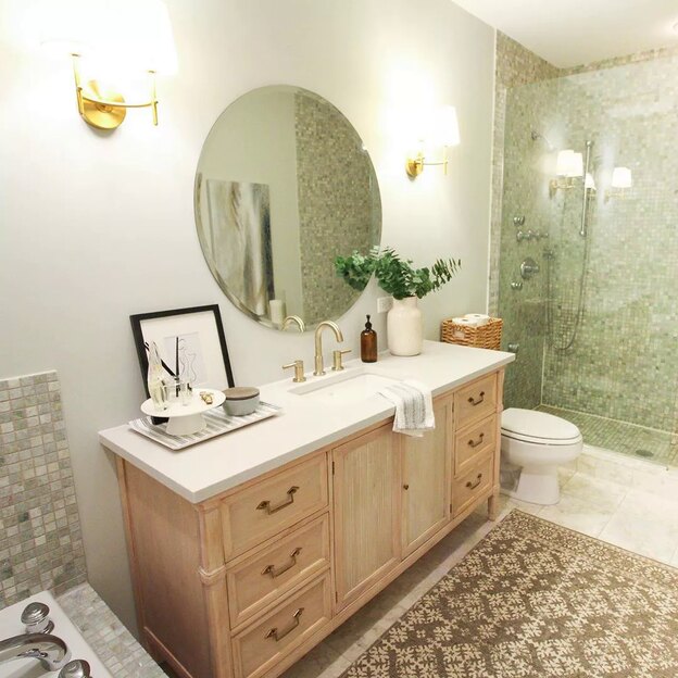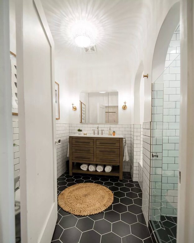 ما خیلی دوست داریم سرویس بهداشتی خانه مان اینقدر جذاب باشد. ترکیب رنگ ها، کاغذ دیواری، دستگیره ها،... همه و همه منحصربفرد و خاص هستند چون سلیقه طراحی داخلی جنیفر و توانایی او برای انجام کارها به دست خودش در اینجا دخیل بوده است. صفحه او را دنبال کنید تا کلی راهکار و بازسازی زیبا که خودتان می توانید انجام دهید را یاد بگیرید.