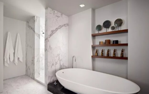 هر چقدر هم کاشی های شیک و طرح های لوکس برای اجرای کاشیکاری حمام پیداکنید مطمئن باشید که مرمر چیز دیگری است. البته باید از پس هزینه های اجرای دیوار و کف سنگ بربیایید.