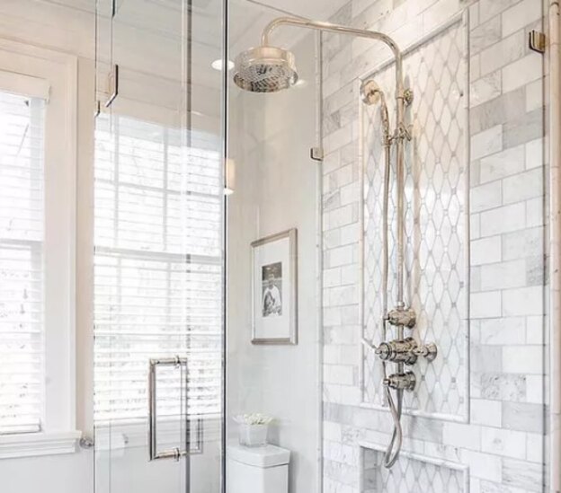 5. دوش کلاسیک گوشه حمام با کاشی مرمر