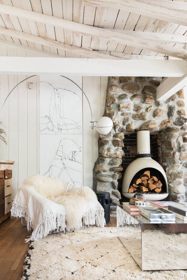 استفاده از متالیک های آینه ای، سنگ، چوبی و پارچه می تواند فضای جدیدی ایجاد کند. این دیوار سنگی اطراف شومینه چوبی دیدنی است. تغییرات جدید به جای قدیمی نمودن سطح آن را جدیدتر نشان می دهد، زیرا از رنگ سفید استفاده شده است.