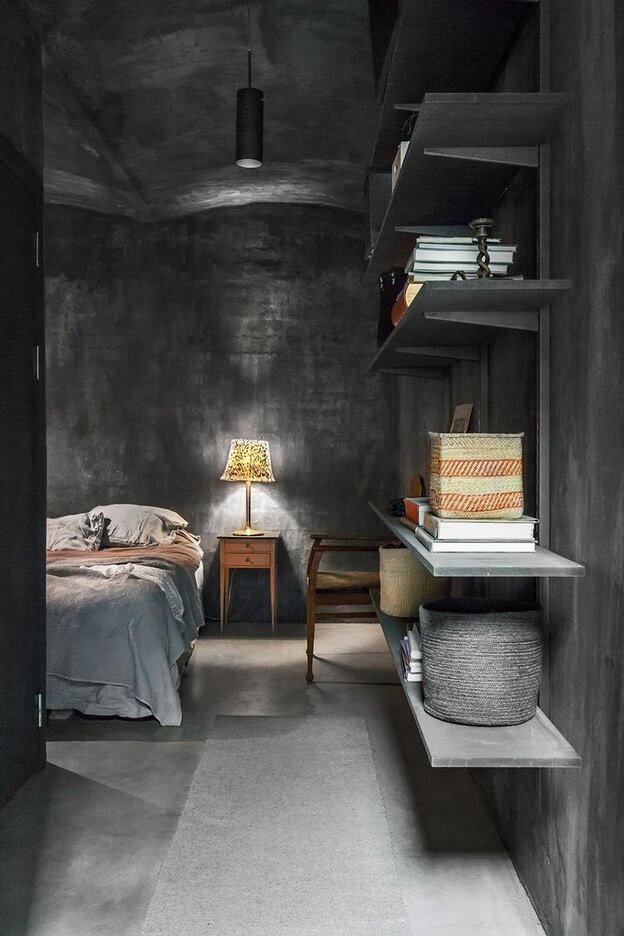 بدون استفاده از رنگ گلاسه هم می توان طرح بافت دار ایجاد کرد. می توانید از این رنگ سیمانی مات استفاده کنید. بتون صیقلی هم جایگزینی دیدنی و جسورانه است، البته در صورتی که مثل این از رنگ تیره استفاده شود.