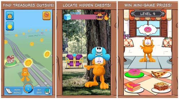 بی شک این یک بازی مناسب ترین بازی برای طرفداران گارفیلد است. در این بازی شما باید با گربه ی مورد علاقه تان به یک مسابقه ی جستجو در دنیای واقعی بروید و جواهرات کمیک های نایاب را بیابید. گرچه حرکت دادن گربه چاق چندان آسان نیست. شما باید غذای مورد علاقه اش را به او بدهید تا حرکت کند و به شکار بپردازد. جدا از شکار جواهرات، می توانید به گارفیلد لباس بپوشانید، مینی گیم بازی کنید و تیکت جمعآوری کنید. همچنین میتوانید با کامل کردن یک سری از کارها، می توانید به امتیازاتی در دنیای واقعی دست یابید. مثل کارت های هدیه آمازون، پیتزای دومینوز، کارت های ویزای پیش پرداخت شده و...