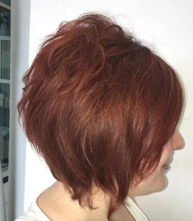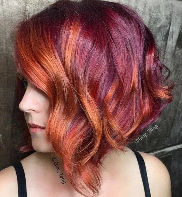 موی کوتاه موج دار و یک رنگ زیبا به شما چهره ای بی پروا و جذاب می بخشد. می توانید موی خود را به حالت عادی یا صاف آن رها کنید. اما هر وقت سرحال بودید، موی خود را با استفاده از اتوی موی فر کننده، موجدار کنید. ترکیب قرمز بورگاندی و قرمز بور کمی روشن است. اما بسیار هماهنگ و به روز می باشد.