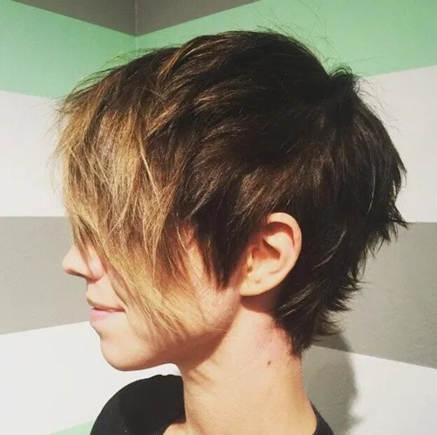در صورتیکه که از نعمت موی پرپشت برخوردارید، هیچ محدودیتی در انتخاب مدل موی خود نخواهید داشت. اما نکته اینجاست که موی پرپشت به زمان بیشتری برای آراستن نیاز دارد. اما موی کوتاه می تواند این زمان را به حداقل برساند. مدل پیکسی A جولیان به سادگی آراسته شده، اما چیزی که حالت دوست داشتنی موی او را دو چندان کرده، هایلایت جذاب و ریشه های تیره ی مو می باشند.