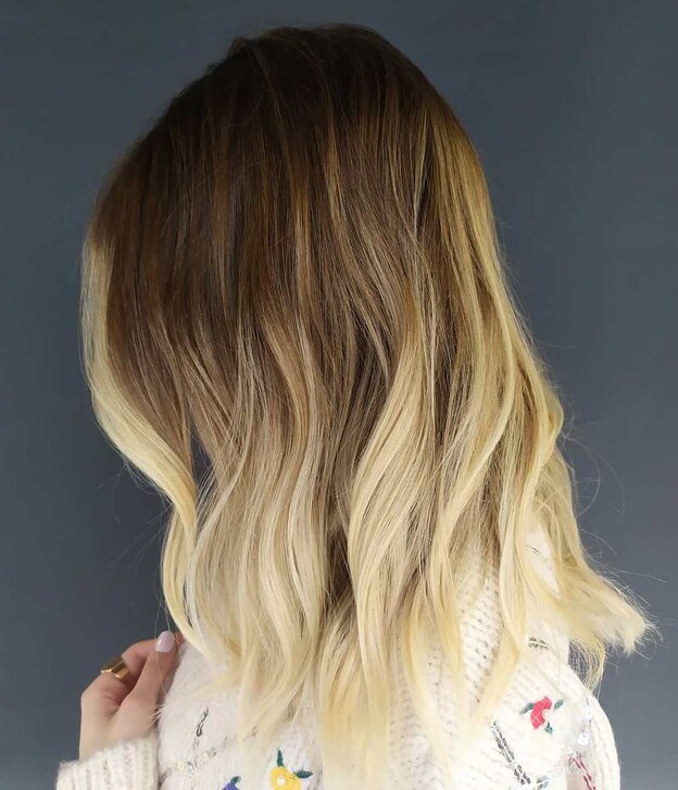 اگر هنوز برای خداحافظی از موهای بلوطی طبیعی تان آماده نیستید ریشه را تیره نگه داشته و پایین را بلوند کنید.