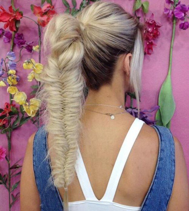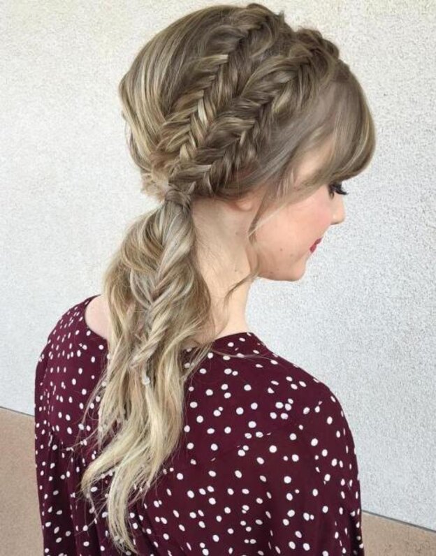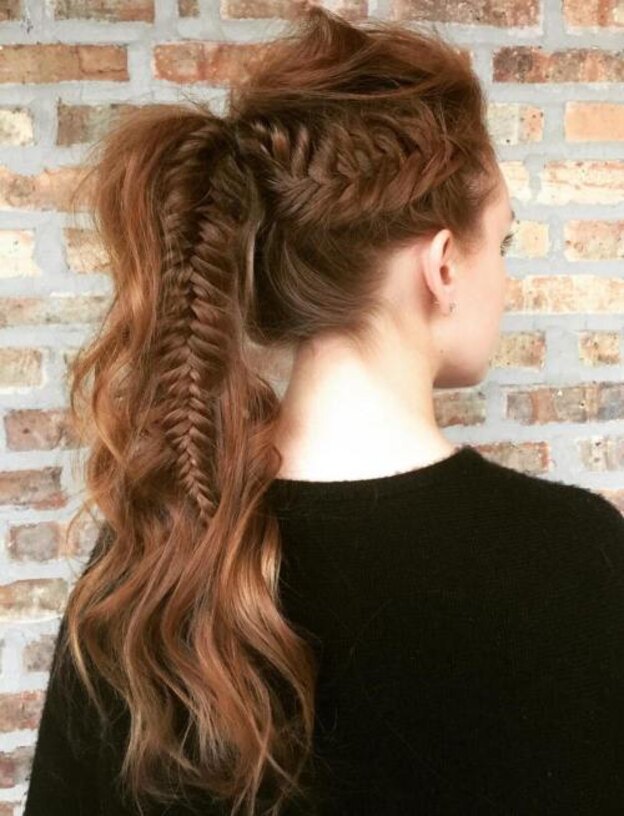 با افزودن یک بافت تیغ ماهی به دو طرف یک دم اسبی آن را زیباتر می کند. برای این کار باید در دو طرف دم اسبی بافت تیغ ماهی داشته باشید و آن را به دم اسبی پایین بیاورید. این مدل هر چقدر آشفته تر باشد زیباتر است. پس به آن حجم بدهید.