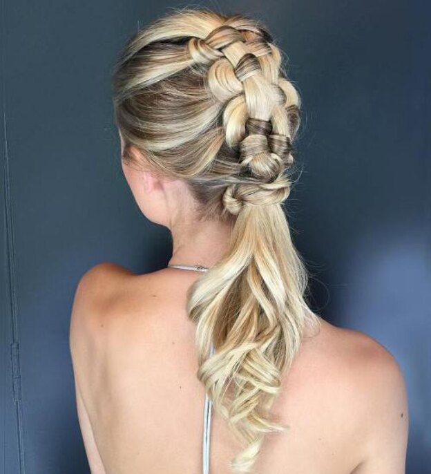 با ترکیب دو بافت در یک دم اسبی یک مدل زیبا خواهید داشت. طره های بلوند به همراه یک بافت کوچک در قلب یک بافت شل بزرگ تر و دم اسبی، یک مدل زیبا خلق می کند. این مدل بسیار شیک و زیباست.