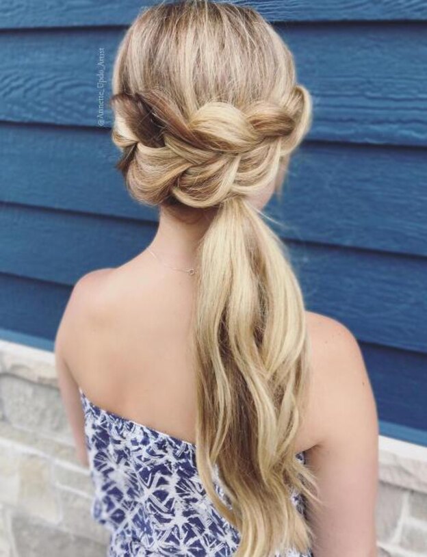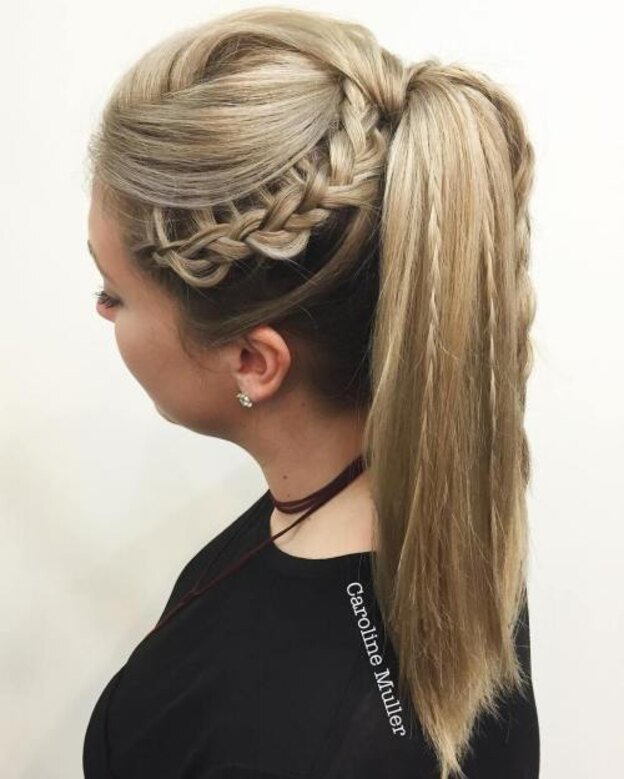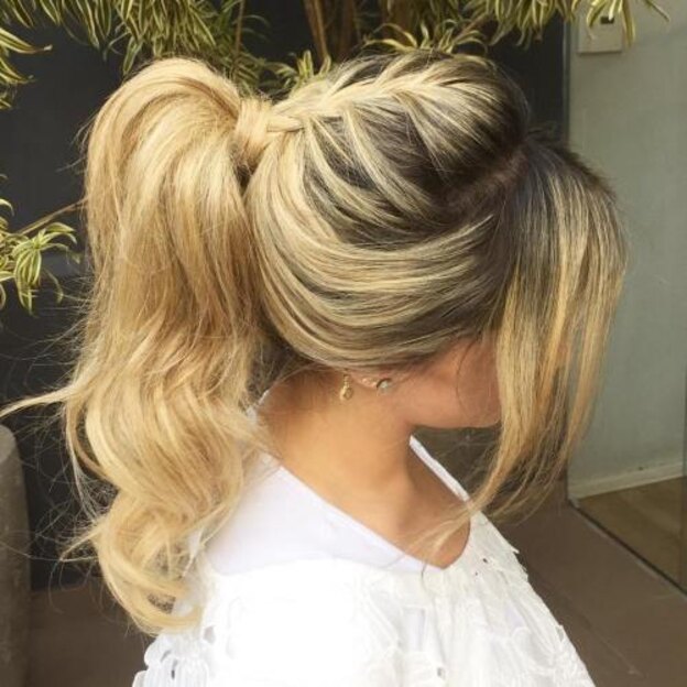 یک دم اسبی در بالا با یک بافت دیدنی است. ابتدا مو را بافته و سپس ببندید. اگر به دنبال یک مدل شیک هستید این مدل مناسب شماست!