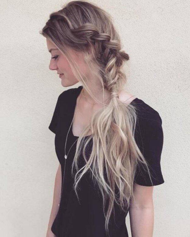 اگر می خواهید یک بافت شل و زیبا مانند تصویر داشته باشید تنها کافی است موهای بافت خود را شل کرده و انتهای آن را به صورت دم اسبی ببندید. یک مدل زیبا برای تمام سنین و مناسبت ها.