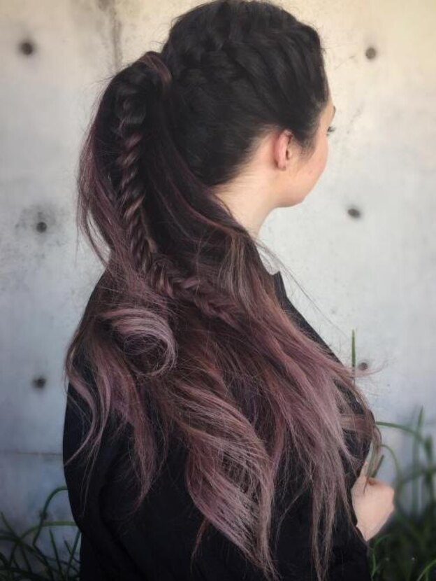 باحال ترین کاری که می توان روی موی رنگ شده انجام داد این است که با آن مدل های زیبا خلق کرد. می توانید یک طرف مو را تا پایین سر بافته و بقیه را به صورت دم اسبی ببندید.