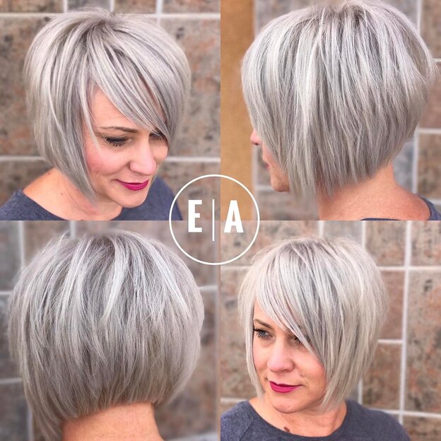 13. موی بلند تا شانه: موهایتان را تا شانه بلند کرده و رنگ نقره ای را برای موها انتخاب کنید.
