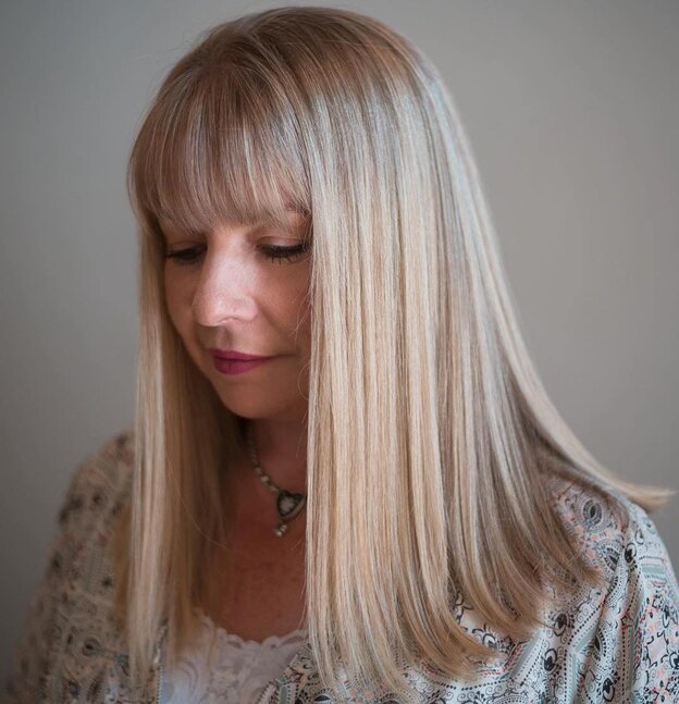 18. بلوند بلند: هایلایت جزئی روی موی بلند و چتری دار دیدنی می شود.
