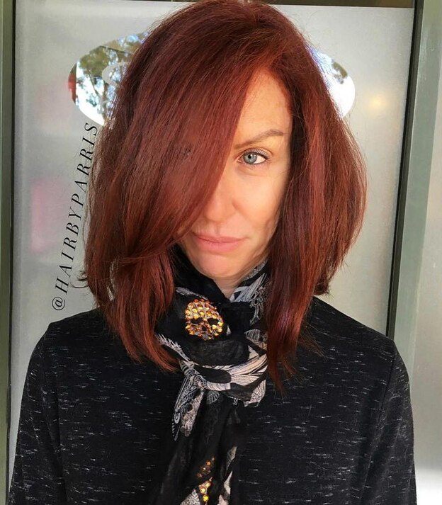 17. قرمز دراماتیک: یک حرکت جسورانه برای موی کوتاه قرمز تیره است که یک طرف آن بلندتر است.