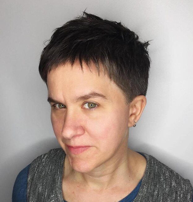 43. کوتاه: با این پیکسی قسمت تاج موها را بلند کنید.