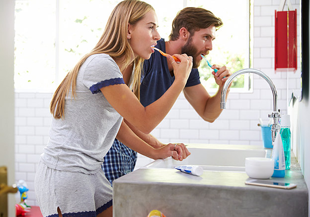 اگر با سر بالا و خیره شدن در آینه مسواک بزنید، ذرات خمیردندان برروی آینه و صورت شویی می پاشند. در حالی که با پایین آوردن سر خود این ذرات در سینک ریخته و با آب شسته می شوند. در نتیجه نیاز نیست زود به زود آینه را تمیز کنید.