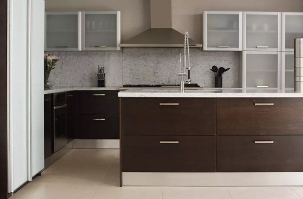 استفاده از رنگ های روشن در بالای کابینت های تیره