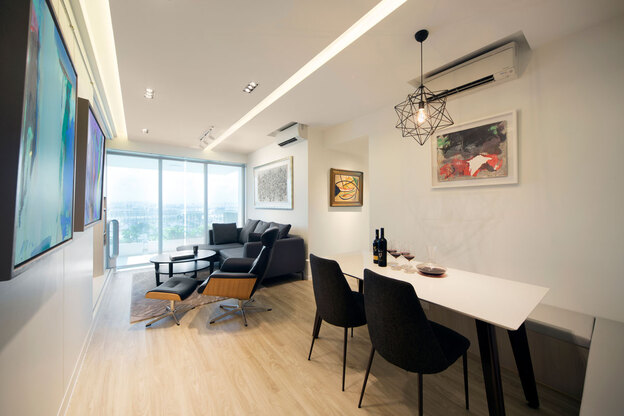 با وجود سقف کاذب می توانید از چراغ های سقفی یا آویز استفاده کنید. یک راه مدرن برای روشن کردن فضا که در عین حا هیچ کدام از سیم کشی ها مشخص نیست و فضای مدرن و مرتب پدید می آید.